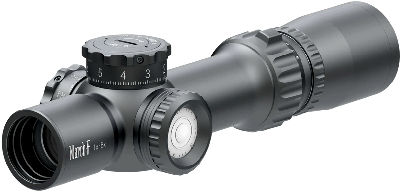 The March 1x-8x24mm Shorty is the world’s lightest and shortest scope with 8 magnification ratio. The length is only 211mm(8.3 inch) and the weight is only 460g(16.23oz). Easy to use for short and middle range shooters. The focus is fixed at 100 yard so you can aim at the target/game with minimum operation
