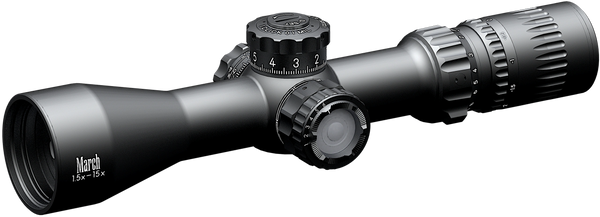 Light weight and compact 1.5-15x42 riflescope ideal for hunting and for precision semi-auto platforms. With day bright illuminated dot (on FD-1, FD-2 and MTR-5 reticles) for fast target acquisition.